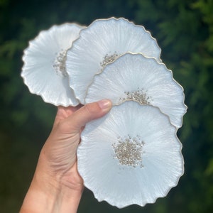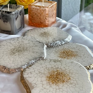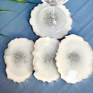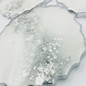 Geode Resin Coasters: White & Silver Agate Style, House Chic Decor