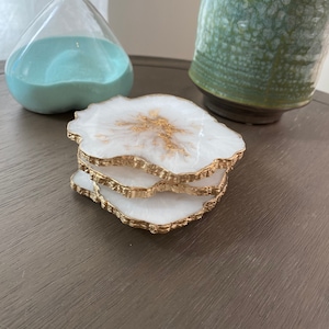 Handmade White Gold Geode Resin Coasters Sets, Housewarming Gift, Gift for her, Resin Art, Home décor, Unique Cute Coaster Set, Fall Decor