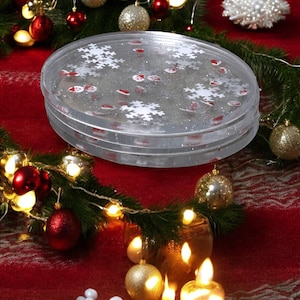Adorable, resin Christmas coasters, snowflakes, tiny Santas and glitter in a set of 4 round, clear resin coasters, Christmas party perfect!