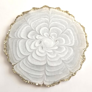 3D Epoxy Resin Coaster: White Flower with Gold Sparkle