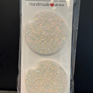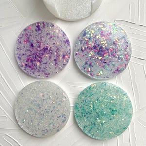 Holographic Iridescent Coaster Set: White Glitter Resin Coasters with Holder
