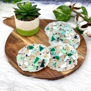 Add a pop of modern art to your table with these terrazzo-inspired resin coasters. Their colorful chips and glossy finish bring playful sophistication to any space. Both decorative and functional, they make a stylish gift for design lovers.