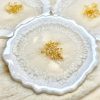 Pressed Flower Resin Coaster Set: Gold and White Minimalist Decor